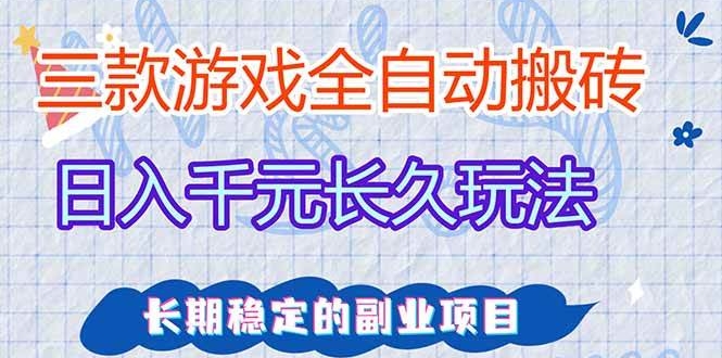 三款老游戏全自动挖金项目,项目持续稳定运行三年时间,每天轻松日入1000+