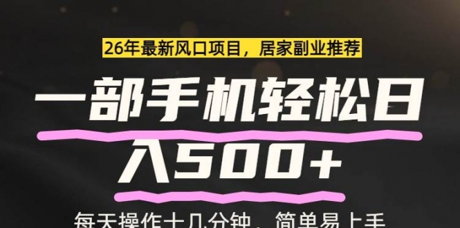 2026最新风口居家副业推荐,只需要一部手机就ok,每天十几分钟,轻松日入500+,这个项目背靠大平台操作,稳定性完全放心!变现更快,正常操作隔天就能够看到收益,慢一点三天内也能够变现,废
