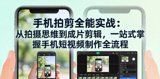 本课程是一套专为零基础小白设计的手机运镜剪辑实战课,聚焦“手机实操+高清剪辑”,帮你从随手拍到爆款短视频。课程从相机设置与焦段使用入手,系统讲解核心剪辑技能(动画运