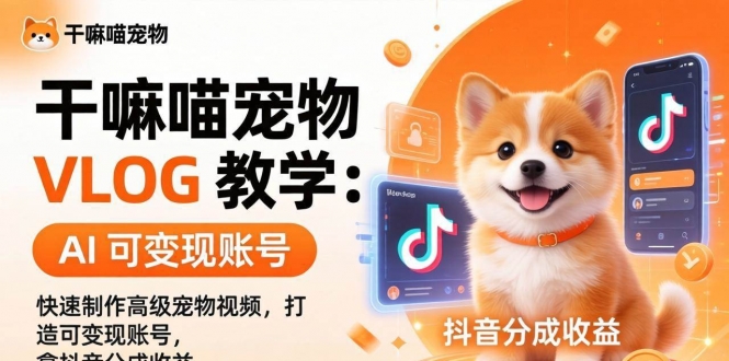 本课程是干嘛喵宠物VLOG实战教学,聚焦高级宠物VLOG账号打造,手把手教你Flow工具使用、提示词创作、分镜头脚本、视频全流程制作,搭配爆款起号逻辑、橱窗带货与变现玩法,