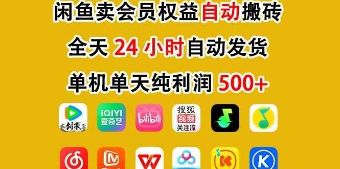 咸鱼卖虚拟直冲会员,一部手机日入500+,全程24小时托管挂机,简单暴力,无脑上手