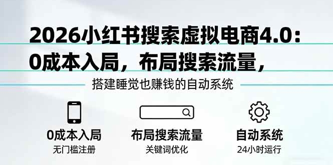 本课程是2026年小红书搜索虚拟电商陪跑训练营4.0,聚焦“0成本投入、操作简单、被动收入”三大核心优势。课程系统讲解小红书虚拟电商的完整玩法:从平台政策红利(虚拟商品专属类目
