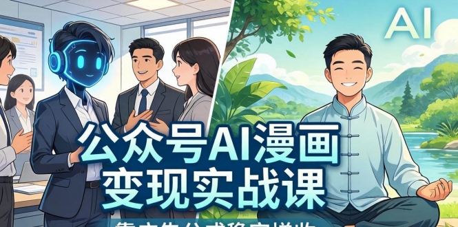 本课程是AI漫画公众号变现全流程SOP实战课,从公众号注册、赛道选择、对标找款、AI漫画制作(星座/职场/养生等),到流量主开通、提现、智能体自动发文、账号运营、流量池