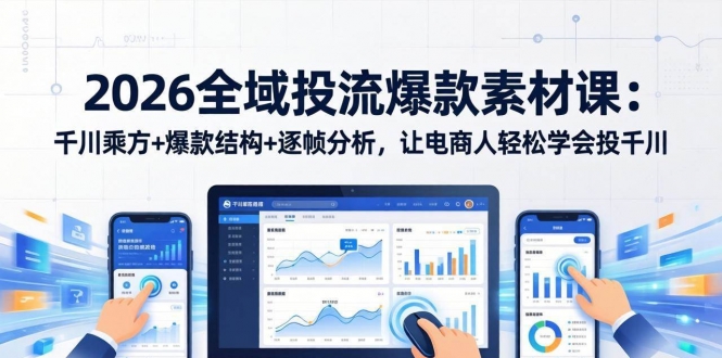本课程是一套2026全域投流爆款素材实战课,聚焦千川投放与爆款素材生产全链路,帮助电商从业者系统掌握投流核心技能。课程围绕**三大爆块**展开:**全域计划搭建**(计划搭建流程、