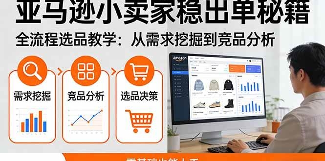 本课程专为零基础亚马逊小卖家设计,从平台前台操作、关键词概念切入,系统讲解供需分析、市场定位、需求挖掘等选品核心逻辑,覆盖跨平台验证、竞品分析、运营难度测算等实