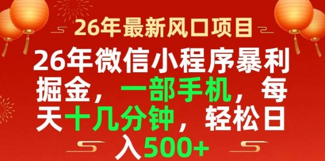 2026微信小程序最暴力玩法,一部手机就能操作,每天十几分钟,轻松日入500+,背靠微信大平台,稳定性完全放心!变现更快,收益更高!而且支持矩阵放大,玩法经过学员内测,最快隔天就能变现,