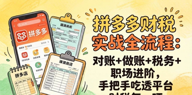 本课程是一套专为拼多多财税从业者打造的实战全流程体系,聚焦“对账+做账+税务+职场进阶”四大核心模块。课程从电商财务工作流程入手,系统讲解拼多多对账所需报表(订单、售