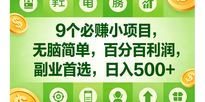 10个必赚小项目,无脑简单,百分百有利润,副业首选,日入200+ 超级简单