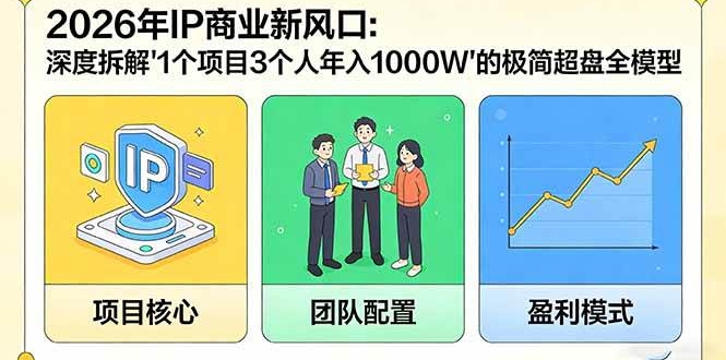 本课程深度拆解“1个项目3个人1年1000W”的极简操盘模型。课程涵盖IP定位、产品化打造、全域流量获取、1v1及批量成交系统、私域链路搭建及商业放大等核心模块,带你重构AI+IP时代的