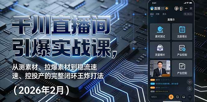 本课程《千川商品卡短视频全域投放及搭建实操》是一套针对抖音电商(千川)广告投放的实战型系统教程,更新至2026年2月。课程全面覆盖千川投放的核心场景:短视频、商品卡、直