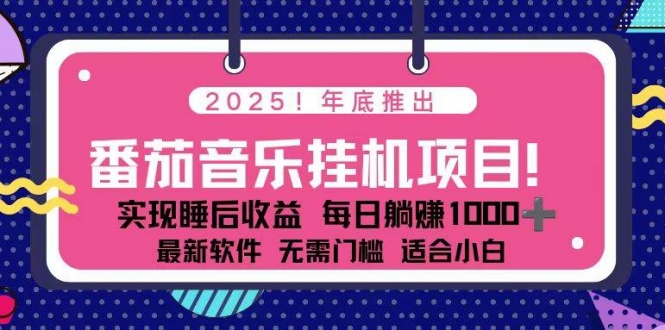 全新平台,蓝海时期!2025年年底番茄音乐挂机项目,每天几分钟,月入1000+,可矩阵,一台电脑支持多个账号,