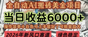 内容:2026财富新机遇!AI智能美金搬砖项目4.0最新版本,全网独家首发,自动脚本操作简单,单日稳收1500-4000+!