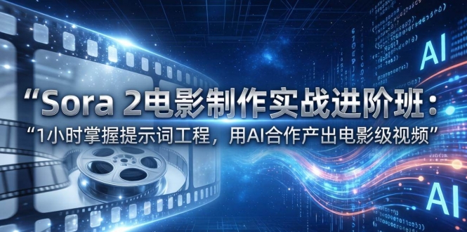 本课程是一套与Sora 2合作的电影视频制作大师班,20节讲座1小时快速掌握AI视频创作核心技能。课程聚焦可说的提示词工程,教你精准控制风格、构图、灯光、动作、对话和色彩;风格锚