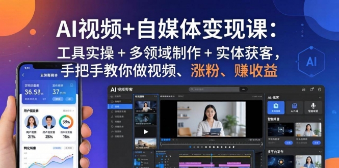 当下AI视频风口爆发,越来越多人想靠AI工具快速做视频、做自媒体、賺收益,可真正上手却处处碰壁:收藏了一堆AI工具教程,却还是不会实操,打开软件无从下手;只懂工具操作,不懂自媒体运营策