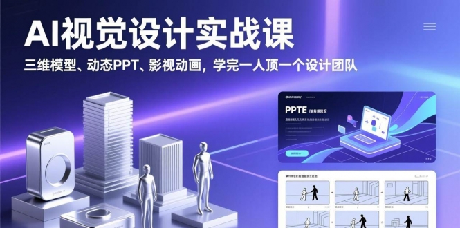 本课程是由锐普出品的AI视觉设计实战课,聚焦于用AI做出专业级视觉作品而非简单工具操作。课程以结果为导向,系统教学如何运用AI生成三维模型、动态视频PPT、艺术字设计、特效
