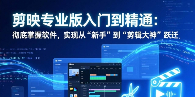 本课程《剪映专业版入门到精通》是一套为零基础学员量身打造的系统化、一站式剪辑进阶课程。课程从软件安装与界面设置、基础操作(导入、剪辑、时间线管理)讲起,逐步深入讲解