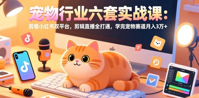 本课程是东哥宠业推出的六套系列实战课,系统覆盖宠物行业从趋势认知到多平台变现的全链路。课程包含先导课(行业趋势分析)、短视频实操课(对标找号、热点宝、橱窗开通)、直