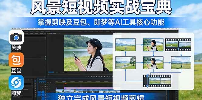本课程是一套专为零基础小白设计的AI风景短视频手机剪辑自学课,聚焦“手机实操+AI提效”,帮你轻松做出爆款治愈风风景视频。课程系统讲解账号实操技巧(主页搭建、起号技巧、
