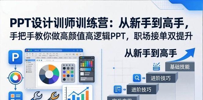 本课程是PPT设计一对一训练营,从新手到高手,手把手教你做出高颜值、高逻辑的PPT。课程涵盖基础认知(误区扫盲、思维导图文案分类)、设计核心(封面、字体、目录过渡、配色、