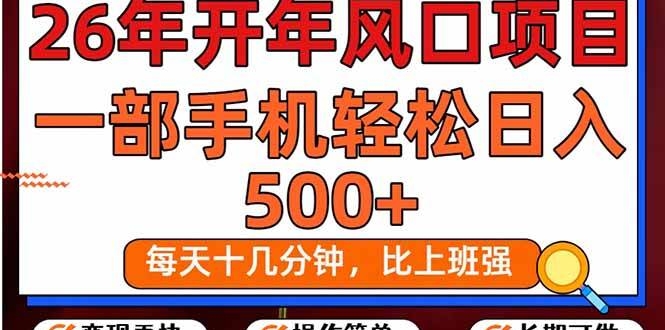 26年开年项目,一部手机轻松日入500+,每天操作十几分钟即可,比打工上班强。可以矩阵放大,这个项目是和腾讯官方合作的,大家放心入手,长期性更是不用担心。变现更快,正常操作,隔天就可以