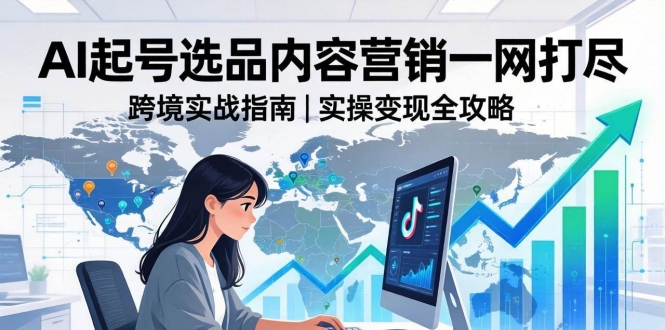 2026TikTok跨境AI实操课,从零基础带你打通流量到变现全流程。课程分为跨境基础、设备环境、实操运营、剪辑拍摄四大模块,从TikTok全球布局、账号起号,到AI文生图、图生视频、数